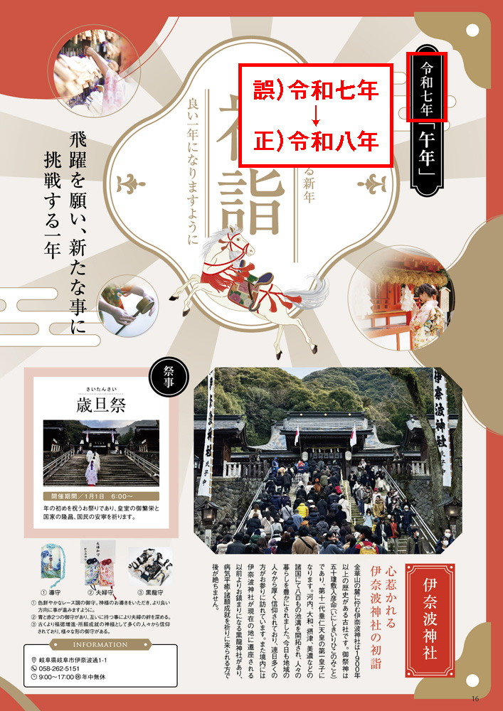 2025年12月発行のフリーペーパー道の駅 岐阜県版【冬号】において、掲載内容の一部に誤りがございました。